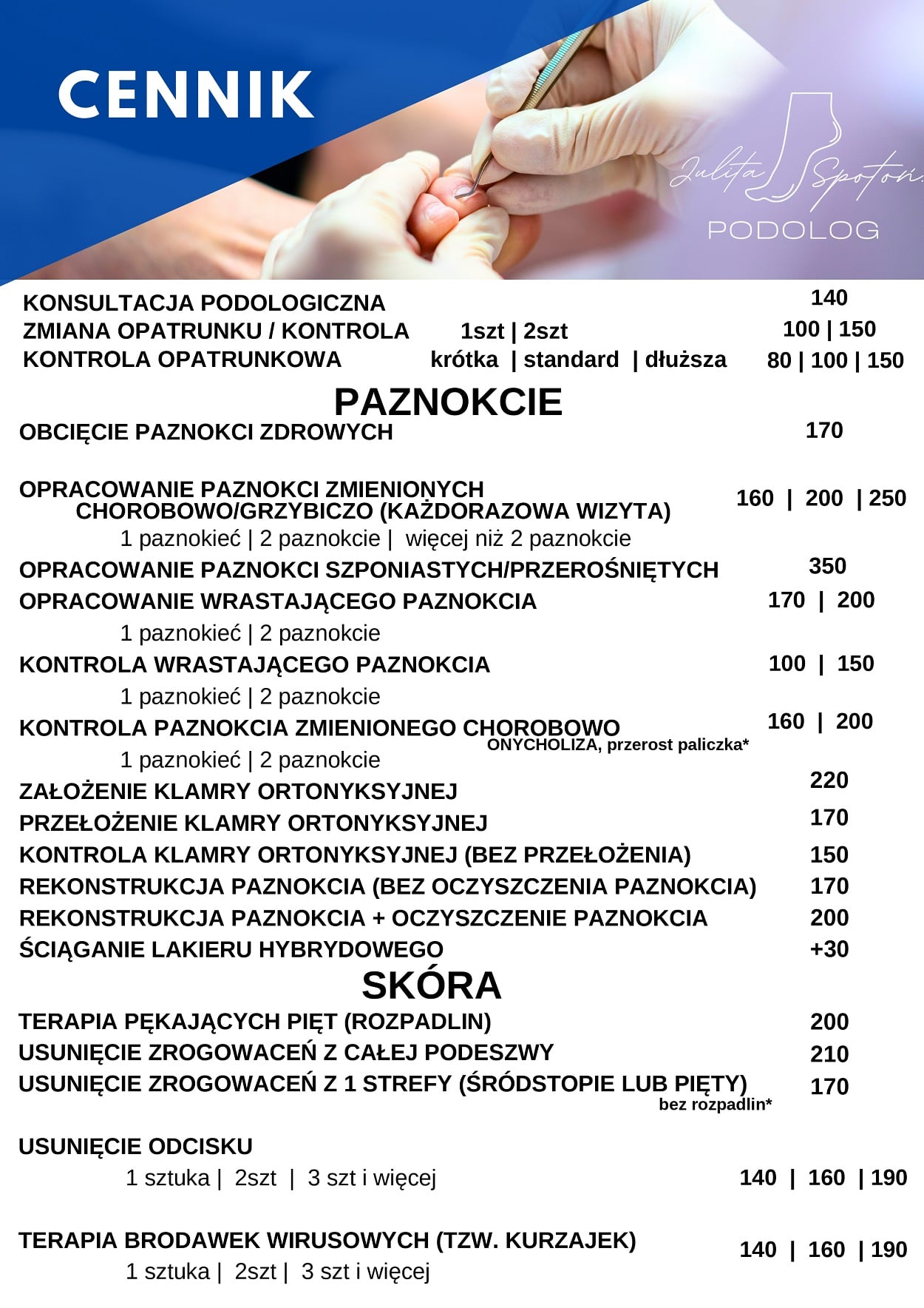 *konsultacja jest bezpłatna przy każdym umówionym zabiegu podologicznym